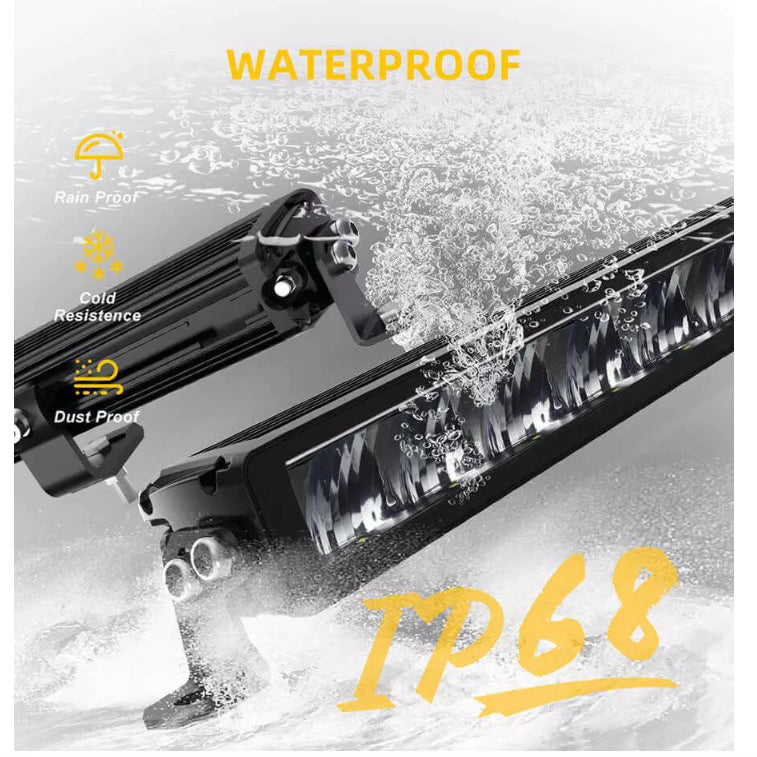 Esta no es una barra LED común. Gracias a su tecnología, concentra y proyecta la luz donde más la necesitas, ofreciendo una iluminación potente y precisa que transforma completamente tu visibilidad. Además su luz diurna (DRL) No solo te da un toque moderno, sino que también te hace más visible durante el día, mejorando tu seguridad en la ruta.