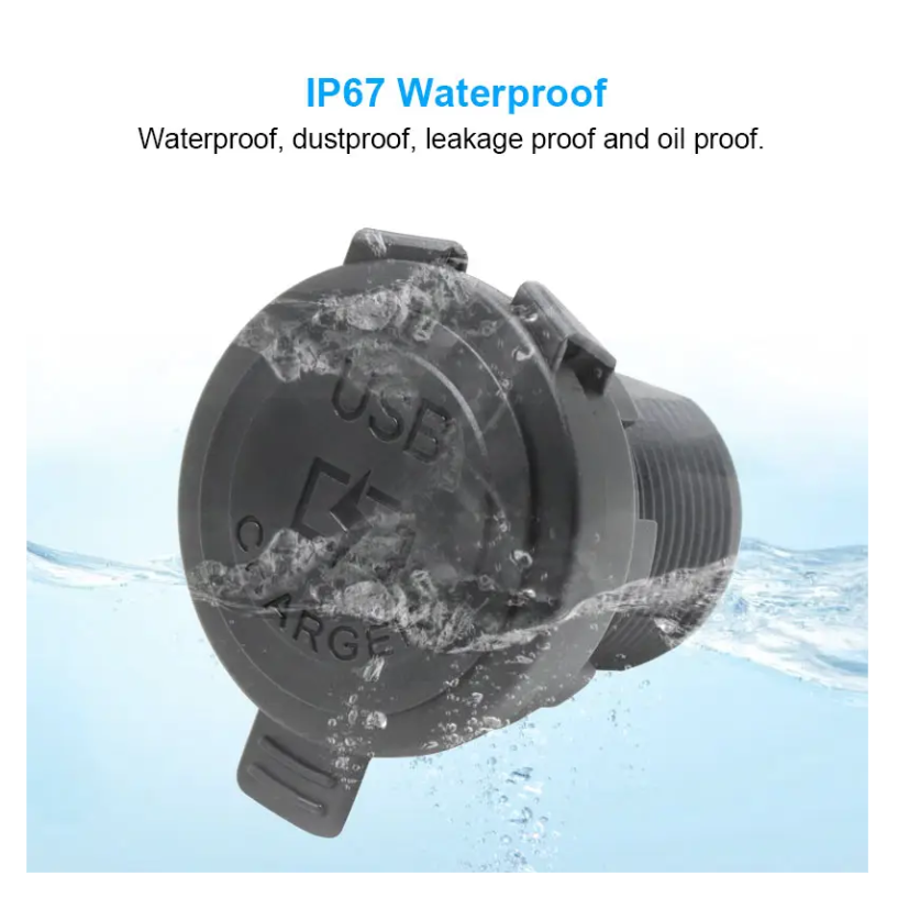Cargador USB-Qc3.0+USB-C de 20w + IP67. Para Auto, Moto, Nutica o Motorhome