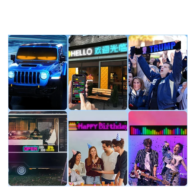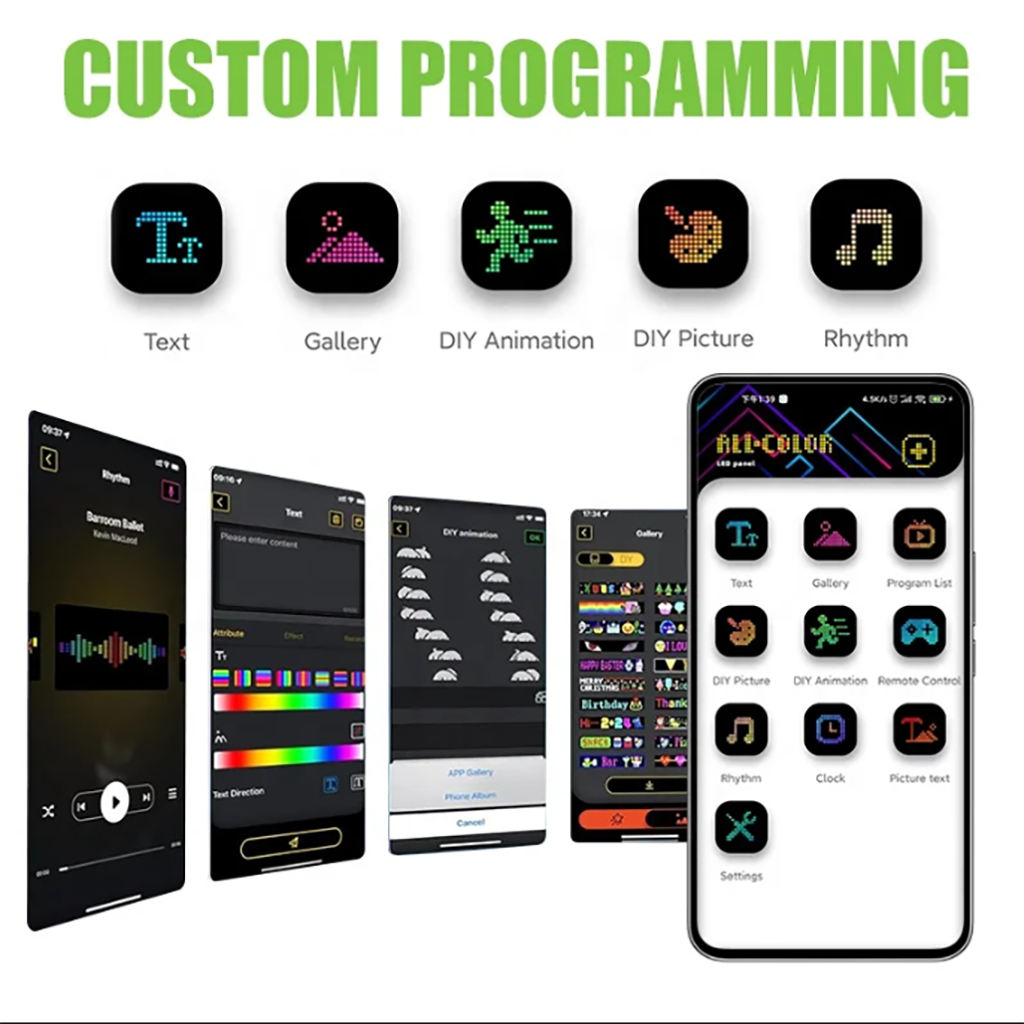 📱 Control Total por APP (Bluetooth): Olvídate de los controles engorrosos. Programá tu texto, efectos, dibujos y animaciones directamente desde la aplicación de tu smartphone.