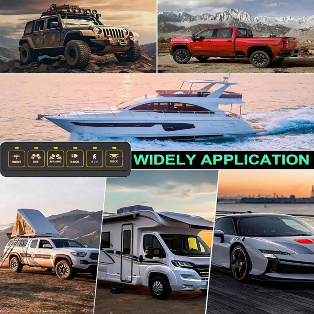 - Múltiples Usos: 6 teclas individuales para controlar luces LED, bombas de agua, electroventiladores y más.